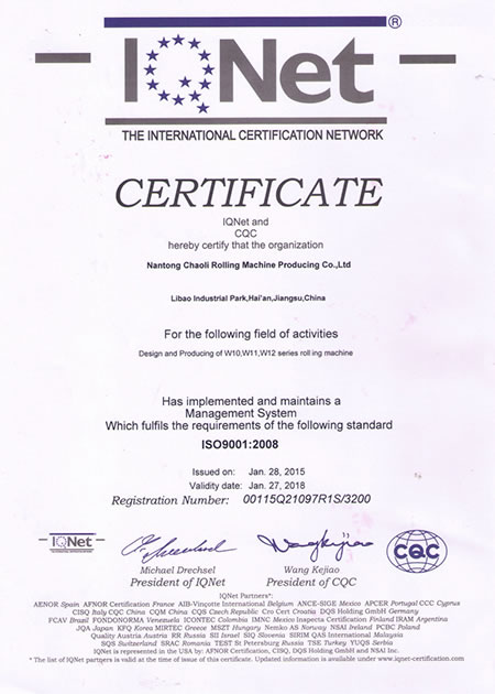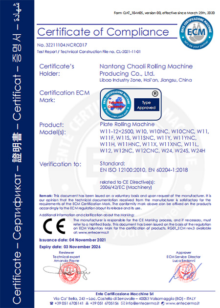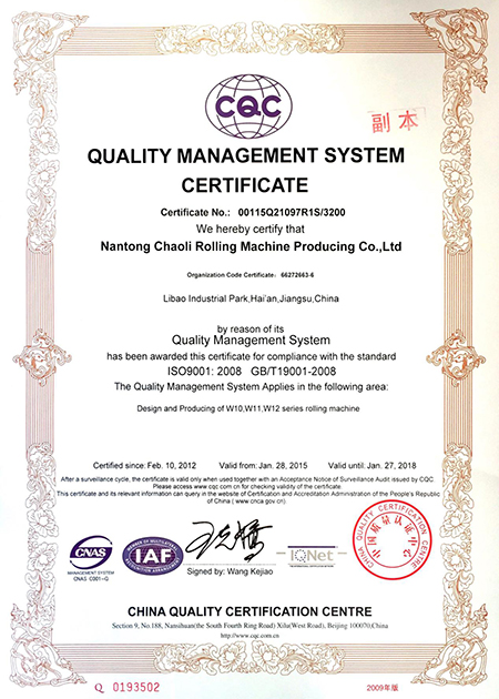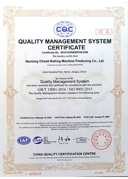 Nantong Chaoli Rolling Machine es un fabricante de roladoras de placas fundado en 1997, comprometido con los más altos estándares de calidad y fiabilidad. Para garantizar la trazabilidad y consistencia de cada equipo, hemos implementado un sistema de archivo integral que registra todas las etapas del proceso de producción, respaldado por una amplia gama de instrumentos de prueba profesionales que permiten realizar inspecciones rigurosas.